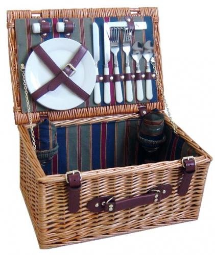 The Rumba Willow Wicker Picnic Basket for Two is perfect for anyone who likes gourmet dining in the great outdoors. The Rumba Picnic Basket features everything you'll need for a romantic picnic at the end of your favorite trail or secluded cove. Its stylish design in Olive Stripe color gives your picnic an old fashioned atmosphere while maintaining elegant lines and styling.The Rumba Willow Picnic-Basket features a large compartment for your favorite picnic delicacies and all the accessories you'll need for an elegant al fresco meal for two. Grab someone special and get outside for a tasteful picnic meal with this wonderful picnic basket. Named for the Cuban marriage dance, this picnic basket makes a great wedding gift or christmas gift.