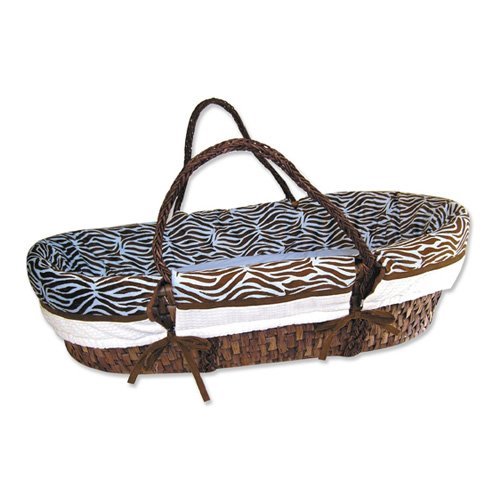 The Sweet Safari Blue Moses Basket will make a thoughtful gift for new parents. Perfect for newborn boys, it features exotic animal-inspired prints in shades of baby blue, chocolate brown, and white. Included in this 4-piece assortment are a 2-inch foam mattress with removable sheet, protective wrap bumper, and elegant woven basket with a dark, rich finish. The basket measures 31L x 18W x 10H inches with tapered sides. All fabrics are crafted from soft 100% cotton. Simply machine wash cold using the gentle cycle occasionally and either tumble dry low or line dry. Do not bleach or dry clean. A full range of Sweet Safari bedding and accessories is available for purchase separately to create a cohesive and stylish look in your child's bedroom.This basket is suitable for babies up to 8 weeks of age. Please note that your child should never be carried in the Moses Basket; it should only be moved when empty. Once your baby outgrows it, the basket makes an ideal container for toys and books.About Trend Lab Begun in 2001 in Minnesota, Trend Lab is a privately held company proudly owned by women. Rapid growth in the past five years has put Trend Lab products on the shelves of major retailers, and the company continues to develop thoroughly tested, high-quality baby and children's bedding, decor, and other items. With mature professionals at the helm of this business, Trend Lab continues to inspire and provide its customers with stylish products for little ones. From bedding to cribs and everything in between, Trend Lab is the right choice for your children. Suggested for use with babies to 8 weeks. Perfect for newborns and can be used until baby begins to roll over. Suggested weight capacity is 15 lbs.. Always carry basket and baby separately . Features soft 100% cotton bedding. Animal prints and solids in blue, brown, and white. Machine wash cold and tumble or line dry. Includes basket, foam mattress, sheet, and wrap bumper. Dimensions: 31L x 18W x 10H in